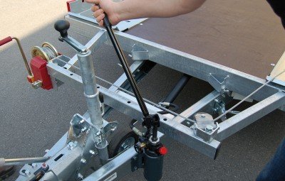 - hydraulische doppelwirkende Handpumpe zum einfachen An- und Abkippen des Anhängeraufbaus