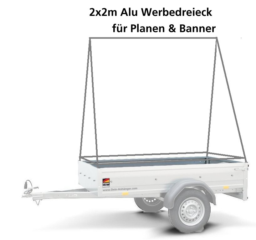 2x2m Alu Werbedreieck fest im Rahmen verschraubar abnehmbar für STEMA Kastenanhänger 201x108cm Innenmaß